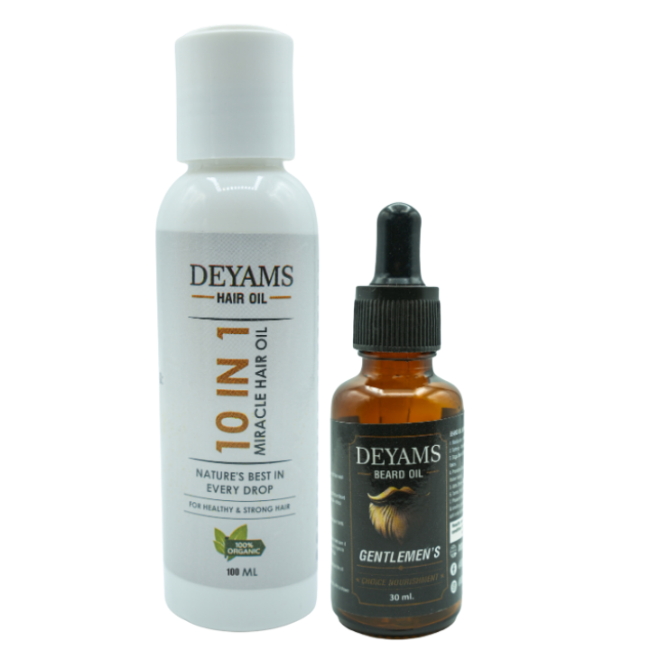 Deyams Premium Combo – Complete Grooming Solution (100ml Miracle Hair Oil + 30ml Gentleman’s Beard Oil) Upgrade your self-care routine with Deyams‘ all-in-one grooming combo. This powerful duo includes: